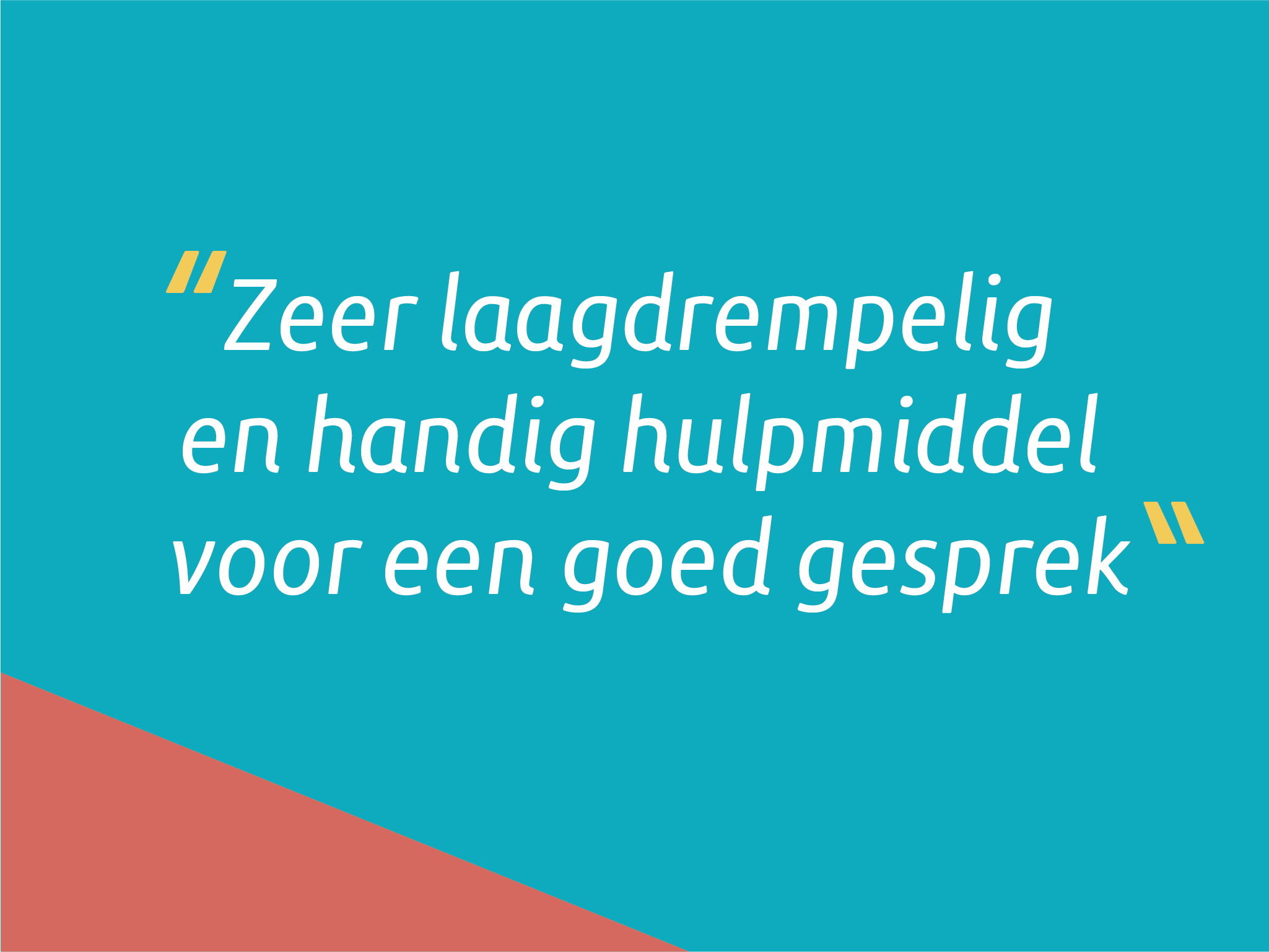 Elke KoersKaart is ontworpen om zo laagdrempelig en aantrekkelijk mogelijk te werken. Daarom zijn dialoogregels, handleiding en begeleiding overbodig gemaakt en in het ontwerp verwerkt. Dialoog by Design noemen we dat.