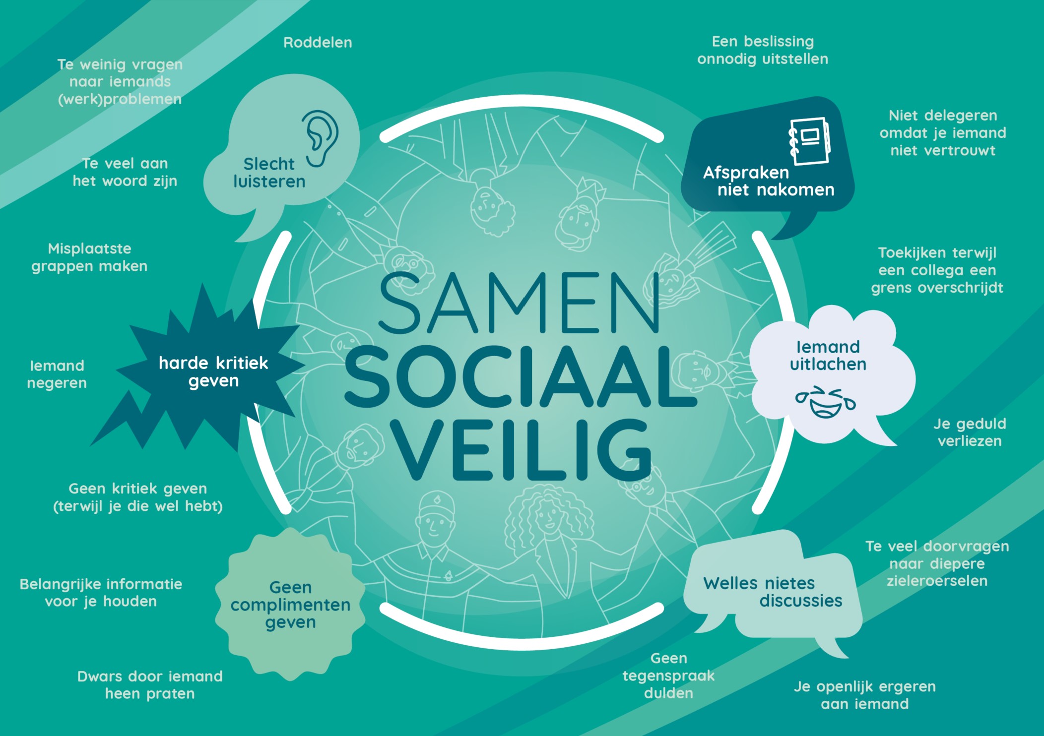Spreek daarna één voor één je punt uit, zonder direct op elkaar te reageren. Wil je toch reageren, vraag dan toestemming. Bij stap 7 gaan jullie op drie zaken dieper in.